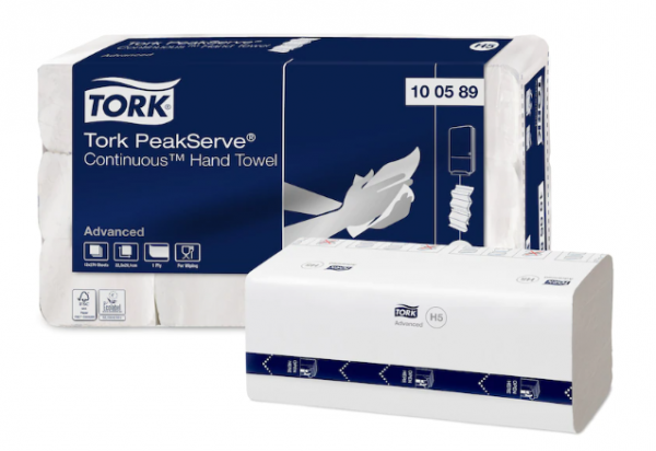 Tork PeakServe®: najnovšia inovácia navrhnutá pre vysoko frekventované toalety a umyvárne, kde personál potrebuje maximalizovať čas upratovania a udržať dobrú plynulosť pre návštevníkov. Systém je kompatibilný so zásobníkom Tork PeakServe. Má vysokú kapacitu utierok, ktoré dokáže dávkovať rýchlo a plynulo bez prerušenia. Stlačené náplne sa rýchlo kedykoľvek dopĺňajú. Ľahko sa uskladňujú a prepravujú, vďaka čomu umožňujú personálu sústrediť sa na upratovanie.